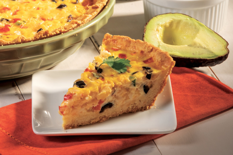 For breakfast or brunch, start with a Southwestern Quiche with Cornbread Crust. The cornmeal crust gives this dish a bit more sturdiness, while ingredients including sweet corn, red pepper and green onion take flavors south of the border.