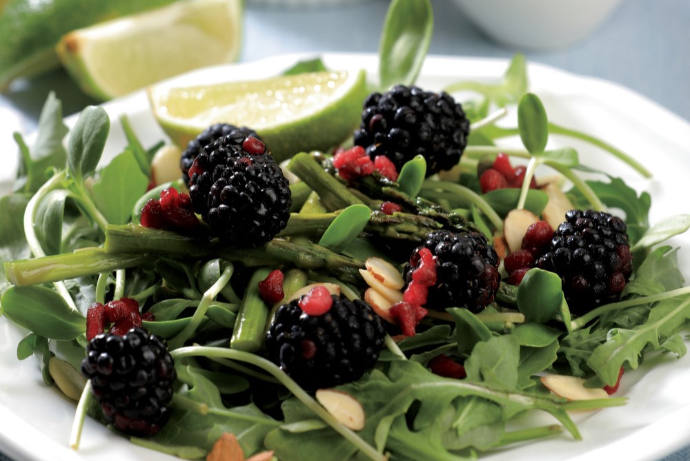 Flavors of spring burst in this salad, thanks to the asparagus and blackberries.