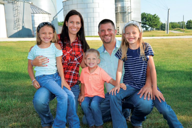Aaron, who has a bachelor’s degree in accounting and management, assumed management of the family farm in 2004 after the death of his father. Lacey was previously employed as a hospital exercise specialist but now works full-time on the farm with a special emphasis on the farm’s freezer beef and pork sales. They raise non-GMO waxy corn, seed soybeans, cattle and swine.