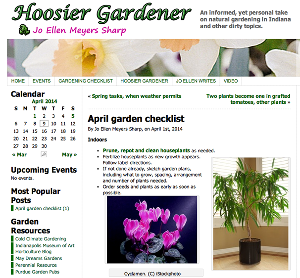 Check out Jo Ellen Meyers Sharp's blog, the Hoosier Gardener, where she shares her stories as a "trial-and-error gardener."